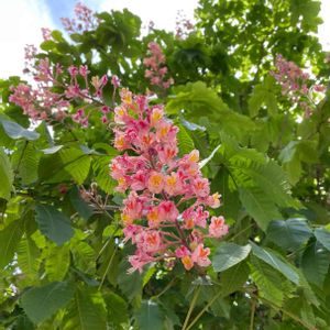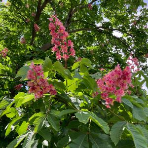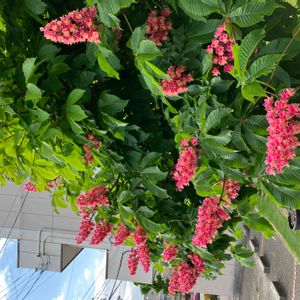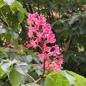 ベニバナトチノキがだいぶ咲いていました。 写真は数日前の晴天の日です。 大きすぎて全体を撮るのは出来なかったので、ひとつを寄って撮りました。 昨日からの激しい☔で今はだいぶ散ってしまってないかなぁ😂