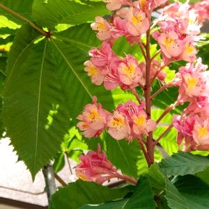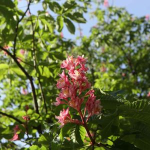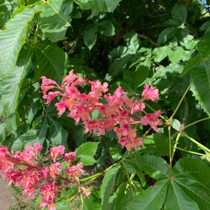 トチノキ③ ベニバナトチノキ ②のマロニエと、アカバナトチノキ(北米産) との交配種です。 関東地方ではたまに公園や街路樹などで 使われるそうですが・・・ 愛知県ではサルスベリが目立ちます。 季節は違いますが、開花期間が長いからかな? ✳︎5/1日浜松市にて。公園の植栽