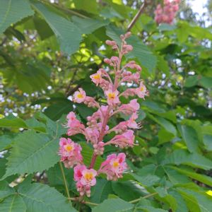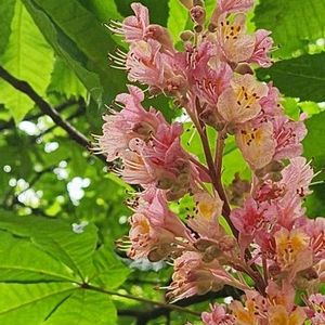 ①トチノキ ムクロジ科トチノキ属 落葉高木 大きな葉に見とれていると 木の上にはソフトクリームのような 花が幾つも咲いていました 🍦🌳🍦 花は200〜500個の花からなり 花弁は4枚 上部に雄花、下部に両性花が 付きます 開花3日までは蜜票が黄色で 蜜が無くなると赤く変化して マルハナバチに知らせる 賢い仕組みです🤍💛🩷 ②ベニバナトチノキ 落葉高木 ヨーロッパトチノキ(マロニエ)と アカバナアメリカトチノキの 交雑種 公園や街路樹に植えられています 💛🩷 ③アカバナアメリカトチノキ 落葉小高木 北米南部および東部原産 木は高くならず 葉も小さく光沢があります 小花は筒状で開ききらず 雄蕊が外に出ます 上部に雄花、下部に両性花が 付きます 冬芽は全く粘りません♥️
