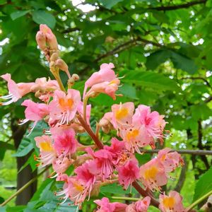 小野市ひまわりの丘公園のベニバナトチノキ また花を見ることができました❣️ 何本か植えてある木の数本に花が咲いてました あらあら!実も見えます👀 蕾もあったので今から行く人も花を見られますよ😘
