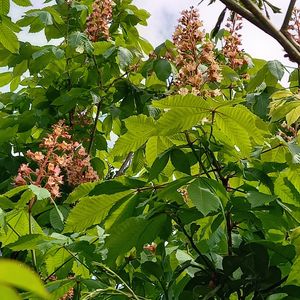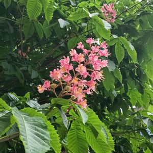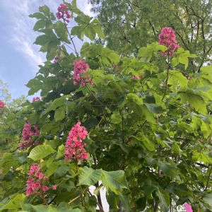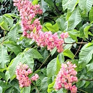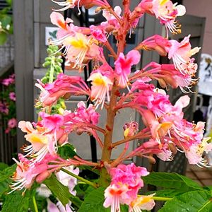 今日は🌦️ 「ベニバナ トチノキ」🪅 去年 函館の近くの 並樹で 見かけて 💖 魅せられました。🤭 今年の春先、苗木を フラワーパークで 発見! 早速 鉢植えに。 花は 無理かと 思いましたが 1輪開花🎉