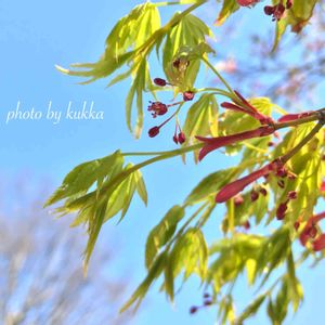 もみじのお花、私も見つけました😊🎶 若葉もきれい~(*ˊᵕˋ*)🌱✨