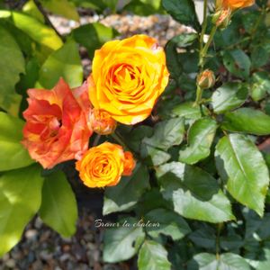 トロピカルシャーベット♪ 色変わりを楽しめるバラ💛🧡❤️🩷夏顔は春とは違いますがこれも可愛い☺️💕 元気いっぱいのビタミンカラーや複色のバラは庭が明るくなって良いですね🙆🏻♀️ ④春のバラ園のトロピカルシャーベット✨