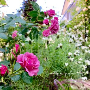 雨上がりで、肌寒い日ですね💦 庭のミニバラ、FL薔薇🌹たちが、咲き始めました😊 これからたくさんの花を咲かして、賑やかになっていきそうで今からワクワクしています😆😆😆