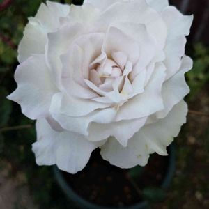 FLバラ(マチルダ) 白に淡いピンクの覆輪が美しい花色です😊 花付きのよいフロリバンダ系の薔薇です😃