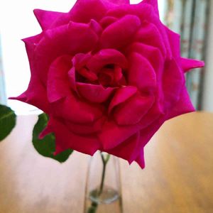 昨日の雨で倒れてしまったので切り花にしました。花付き、花持ち、香りとも良く、フロリバンダの赤バラでは、最強品種と思います。うどんこ病・黒星病にも強いです。上に向いて咲く花の姿も良いです。