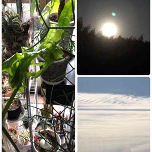 昨夜の満月🌕 大きくて綺麗でしたね 毎年12月にセロームの新芽が出る事は今まで無かったのに温かいのでしょうか。 今朝の太田川上空 上の段は渦巻いて 下は一つづつ区切れが有ります