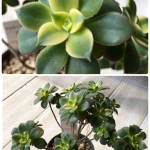 45さんにお願いした韓国鉢 左の鉢は大きめです。💕 お菓子もありがとうございました。 2.5鉢が一杯になったエケベリアを植え替えますね😊 後ろは余り元気でないリプサリス 上手にされてる方どの様にされてるか 教えてください🙏 置き場がいけないかな⁉️ 足が冷えて痛く寝るのでもう少し暖かくなってしますね。 又投稿しますね