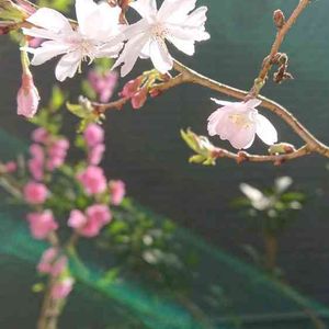 12月に桜⁉️ 枝や花を見ると桜かなと思うのですが…。 花は小ぶりで白色です。