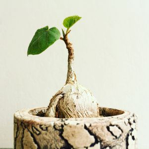 フィカス属ってイチジク属と おんなじらしぃ🌱 葉脈が美しいー、よきよき😻 幹の肥大はイマイチで、 葉が幹と比べ、何頭身かわからない くらい大きいのだけれど、 絶賛徒長中ですか💦💦 でもでも、 盆栽的コーデックスプランツ の名誉にかけて、 パルメリーさんと共に 仕立てますっ(*´꒳`*)🎶 アデュ〜🌟