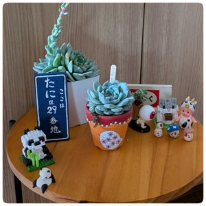 🏷️ソクモン祭り!? モルタルデコでキノコ🍄のお家を作りました〜〜カインズ昭島店〜ユリリン先生のペースはみんな自由に好きなものを作るスタイルで、めっちゃ恵まれているなぁ〜と感じています。 青いキノコにアメイジンググレイスが、入っています〜もうこの夏の限界〜あっそんなコをまとめてキノコに寄せ植えしよう!計画ですう〜消えないでくれるといいなぁ〜〜 葉挿しから育てていたコも、春には名札が入っていたのに7Cになっちゃったなぁ〜このまま消えちゃうかも〜の救出 キノコは赤の方が大きくて青はちょっと寄せるスペースも小ちゃいの〜先生に街灯つけたーい!と言うとこれつける?と考えてくれるんだけど、それちゃんと大きく撮ればよかったなぁ〜〜で、ちょっと拡大 プレートもぶら下げたーいで作りました〜〜色を入れた方が可愛いねぇ〜〜ちょっとさみしいなぁ 昨日の朝は涼しかった〜今日も部屋は25度〜エアコンいりませんでした~。暑くて暑くて涼しくなるなんて信じられないよーーだったけど、えっ秋近いかも? 芸術の秋、 多肉のですよぉ〜〜〜