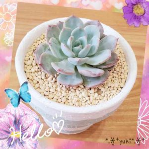 こんにちは٩(๑❛ᴗ❛๑)۶♡ 今日は晴れたり曇ったり…何といっても体に纏わり付く様な湿気が気持ち悪いです(›´A`‹ ) エケベリア ブルーサンダー 14日にunicaさんからお持ち帰りした5つ目です。 unicaさんも好きな多肉らしいですよ~(∗ˊᵕ`∗) 紫と水色のグラデーションが綺麗な多肉ちゃんです♡