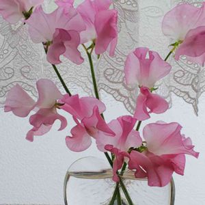♪ピンクのスイートピー ハートの花瓶に 3輪挿してみました 甘い香り届きますか♡