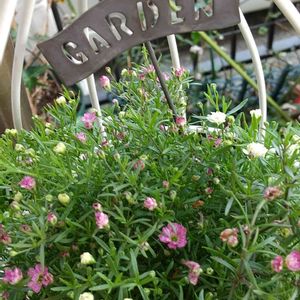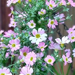 今日のお花 カスミソウ🌿 先月我が家に初めてやってきた子です💞 切り花では良く買い求めるカスミソウだけど、 例によって赤札コーナーで見つけ、ピンクとホワイト2色咲きが可愛くてお迎えしました😆💓