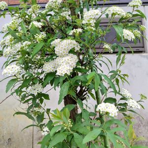 八重咲きのコデマリ(小手毬)がモリモリになって来ました❇️🤍💮💮💮🤍❇️ 固まって咲いていると、まるでブーケのようです💮💐💮🎀 去年も花後に結構剪定したのですが、大きな木になってしまいました😅🌳