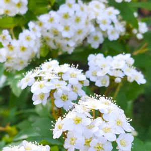 「まるでシジミバナ😗」 昨日投稿したばかりの花… だって、容姿が全然違うんです。 思わず凝視→考える→判断→撮影📸 に至りました「八重咲きの小手毬」 ※単体で見ると蜆花ソックリ😊