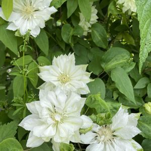 🏷️白い水曜日♡ 我が家の白い花を集めてみました ①クレマチス ②セイヨウオダマキ ③八重咲きコデマリ ④オオデマリ←とコデマリ→ ⑤ツユクサ