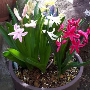 何年ものかのヒヤシンス。 花はまばらだけど今年も色とりどり咲いてくれました(〃´ω`〃)