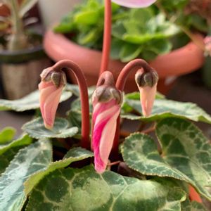 おはようございます😊💕 シクラメンの蕾が、マーブル模様になっていて、めちゃ可愛い〜〜😍❣️