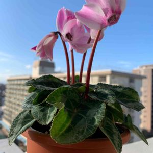 まだまだ咲きます‼️👍😆💕💕 テーブルシクラメン(勝手にそう呼んでます)さん😍👌 蕾もまだ覗いています🎶🎶 この子を見ながらの、コーヒータイムは最高です🌸🌸 癒される〜〜🥰🥰