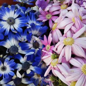 ガーベラ 青のは足利フラワーパークで買ってきたやつで ピンクは子供の保育園で毎年卒園式で配られるやつ。 並ぶと可愛い( ´∀`) よし、仕事嫌々行ってきます🙌‼️