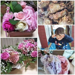 はいっ、そんなこんなで今日もりあみつぅぅぅぅ( ´∀`) 今日の物産展は市で毎年この時期にやってるもので、地域や提携都市(日立と鳴門)の農海産物や花、食べ物、名品などがあるやつで そこで毎年出てるレバーの唐揚げ(右上)が子供も食べやすくて毎年買ってるんだけど 詰め放題1000円で、回りに人だかりができるほど山盛りにして参りました🤣 その後娘は放牧。 息子が手こぎトロッコにハマりまくって何回も乗ってた🤣🤣すっごい楽しかったみたい‼️←右真ん中 1人1つ順番なので娘とともに並んでバラをゲット‼️成功報酬のお小遣いを渡しましてジェラート買いに行ったらダブルがなくて 娘「イチゴがいい‼️」私「ママ一口だけでいいからブルーベリーヨーグルトにして‼️」とか言って結局イチゴ頼んだらお姉さんがブルーベリーヨーグルトも一緒に盛ってくれた🤣🤣←右下 ヤバい超優しい‼️✨#ジェラート#ミラノ#桐生市 その後バラをお裾分けにYUMIKOさんのお宅に伺って、頂いたのが左上のバラ😆 これ石鹸なんだよー‼️娘は喜んで机に飾ってます、ありがとうございます🤗💕 そして帰宅後 私「はー疲れたー」スミノフ🍸️グビー 旦那「まだ出かけるんじゃないの?」 そ う だ っ た (゚д゚) 飲んでしまったものは仕方ない‼️一応ごめんなさいはした🤣🤣 家族リクエストの餃子を作って、葉っぱっぱさんから頂いたタレで頂いて🤗ごちそうさまです💕 息子がお風呂の間に挿し木ができそうなところを切って、バスケット2つにそれぞれ入るように植え替えて、1つはうちに、もう1つは娘の学校に持たせる😁 はぁぁ遊びきった感じがして気持ちいぃぃぃぃ😆💕✨‼️