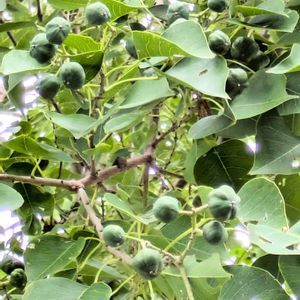 逆光で見えにくいけど、道沿いにたくさん大きな実がなってる。 果樹を街路樹にするって珍しいよね。