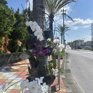 街路樹にくっつけてある胡蝶蘭 素敵ですね