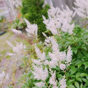 白のアスチルベが咲きました 北側のピンクより早いです モフッ(*´꒳`*)