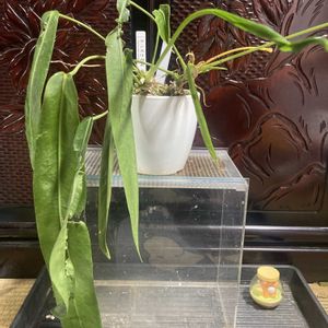 遅ればせながら サンシャインらん展の戦利品です ①X.Hohenmea Holp タイのナーセリーさんから購入したホヘンベルギアとエクメアの種間交配種です。 ホヘンのむっちり壺感とエクメアのくるんとした葉先を持つ良いとこどりの子です😍 ②Anthurium DRAYAKI 太陽園芸さんで見つけた念願のドラヤキちゃん!かわいすぎ❤︎ オリジナルかどうかは不明との事ですがドラヤキシリーズの中ではかなり丸くてオリジナルに近いかも?! ③Den.10252 Den.Morning Glory こちらもタイのナーセリーさんから。 ワイヤー通してそのまま吊り下げてもかわいいなあと思い購入😊 驚きの200円!お値段もかわいい ④Paph. wenshanense パフィオペディラム・ウェンシャネンセ 我が家では初の中国の子!雲南省原産の洋ラン原種です。 幾何学模様の葉っぱがかっこいい 花茎がとっても短いのが特徴で株元にどーんと一輪咲きます。 蕾付きを買ったので半月後くらいに開くかも?楽しみです☺️