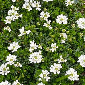 今日のお花 イベリス🌟 植え付けてから2年〜今年初めて開花です😆👏 枯れない、大きくなったけど咲かず💦 秋から定期的にリン酸肥料を控えめにあげて様子見てたら今年はとても沢山蕾を付けて初❣️開花してくれました🥰