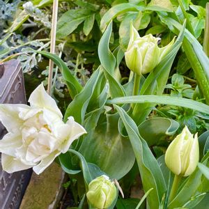 秋植えの白いチューリップ🌷が咲きました👏 白に薄い緑の線が入った美人さんです🥰 去年はチューリップは全敗で咲かずで⤵️😭💦 今年は5種植えて3種まで咲きました😆👏 秋植え球根は毎年咲くまでドキドキです😆