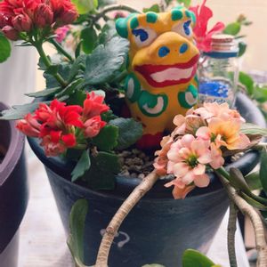 シーサーオリオン最終日✨ むかーし沖縄の琉球村でシーサー作り体験した時のシーサーだよって言わないとややわからない危ない作品を発見⚠ カランコエに紛れさせてみました💦