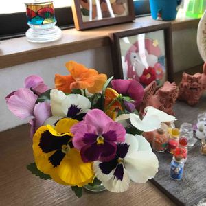 こんにちは〜😊 今日は、庭仕事💦 多肉ちゃん🌵✂️して植えて🌵 明日から、投稿しまーす💕 パンジー🌸伸びてる花を✂️して 花瓶に💕かわいい😍