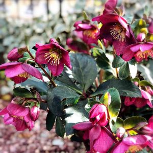 クリスマスローズ 氷の薔薇レッド🌹 激安花屋さんにて🌿 衝撃的な値段だったので 撮影しました。☺️ 葉の下には、物凄く沢山の蕾が 下の方に付いてました💕 3鉢しかなく、この後、 即完売だそうです☺️🌿 去年12月中旬に撮影📸