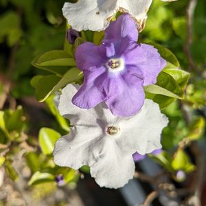 こんばんは~🤓🌌 次々と咲き紫から白❗に変わる満開の可愛い〜鉢植えの💜💜ニオイバンマツリ🤍🤍 🏠我家の庭の住人紹介😍 R4年5月8日📸撮影