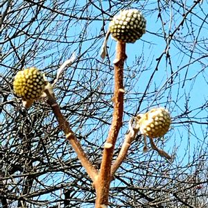 今日のお花 🟡ミツマタ🟡 青空に映える黄色のツブツブ🟡🟡