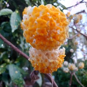 『三椏⚪️🟡ミツマタ』 枝が3本に枝分かれしてますね❣️ 花も小さな花が 沢山集まって丸い形になってます⚪️🟡