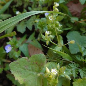 今日のお花 コハコベ ナデシコ科ハコベ属 越年草 花期3〜9月 ヨーロッパ原産 世界中に帰化している。 日本では史前帰化植物として扱われている。 畑や道路空き地などいたる所に生える。 花は直径6〜7mm 花弁は5枚だが、基部近くまで深く2裂して10枚に見える。 雌しべが1個、花柱は3個、雄しべは1〜7個である。