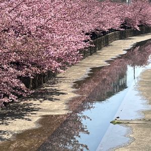 ◇ 伏見・淀水路にて ◇2025.3.20 ①②河津桜 ③コハコベ ④ナズナ ⑤花見のお昼