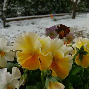 おはようございます😊 今朝は雪がうっすら積もっていました❄️ 冬に戻りましたね🥶 新人のフリフリビオラ、 外に出すか中に入れるか悩むところ🤔 今日は父の手術の日です🏥 どうか無事に終わりますように😌