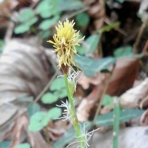 何のお花か分かりません…😓 宜しくお願いします🙇 早速 教えていただき 有難うございます✨🙇✨ ヒゴクサ(肥後草) カヤツリグサ科スゲ属 花の終わりの時期になってきたヒゴクサ🌿 雌蕊の柱頭は、受粉を終えたのか、しおれ始めています🥀 2019/3/17 福岡県 井原山