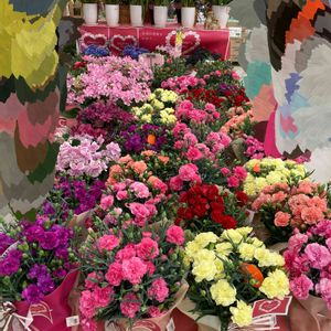 母の日売り場完成(師匠が!) 火曜日にドンと入荷して 歯抜けになる前に記録で📷 今年は入り口入ってすぐの一等地に 展開できました♪ アジサイは本当なら外がいいのですが💦