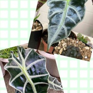 アロカシア アマゾニカ 多分ポリー💦 かっこいいヤツ✨ ずっと前から欲しかった やっと手に入れました🫶 ツヤツヤピカピカの濃いグリーンに くっきりとした白の葉脈♡ 若い葉の展開もまた何とも可愛らしい🥰