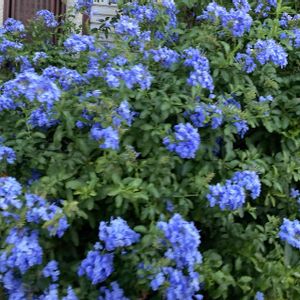 近所の美容室のルリマツリ ここのルリマツリは屋根に届きそうなくらい立派です☺️ 余りに暑いので🚗の中から📷 🤣🤣