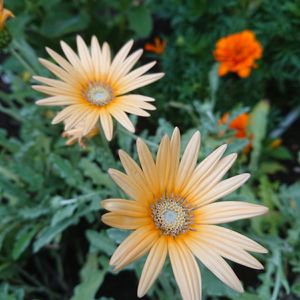 一見ガザニアのようだけど、葉っぱをみるとキク科かな?丈夫そう!ということで3色で植えてみました。住人は脚長なので埋もれないキリン さん。
