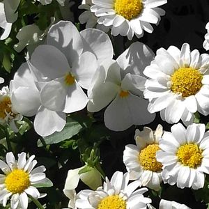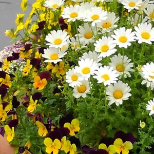 数日前の晴れた日に 🌞✨✨ ノースポールと、 ビオラと。○💛○💚 🦀ト。。。 👾❓