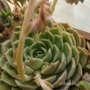今日は陽射しもあって穏やかな日だったのであちこちの多肉ちゃんをチェック( ´罒`*)✧ そしたらいたる所から花芽が… …。 なので、 『勝手に花芽祭り』と題して投稿をしつこくさせて頂きます(((*≧艸≦)ププッ 1枚目。 『成長点が花芽へと…』です