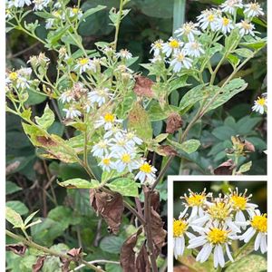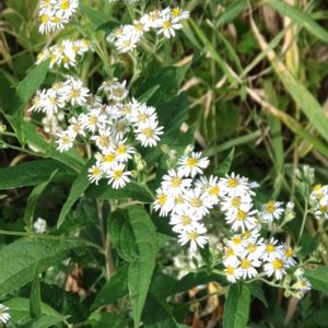 野菊の様な白いお花がたくさん咲いていましたがシラヤマギクでしょうか❓😅 あっきさんの回答でゴマナとわかりました💡 🔎葉は細長い楕円形で15~25cmにもなり、縁には粗い鋸歯があり、ごわごわした感触。 この葉の形がゴマの葉に似ていることが名前の由来になったそうです❣️ 🏷️白い水曜日♡🏷️山野草マニアに参加させて頂きます🥰