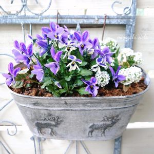 今日は母と待ちに待った宮崎のパンジービオラのプチマルシェがあるとのことで出かけました。 圧巻の美しい親株にビオラの販売も✨母も私もわくわくが止まりませんでした😊悩みに悩みいくつかお迎えしてきたので1つ寄せ植えしてみました。なかなか実物のままの色味に写ってくれなくて苦戦しました😭 もう少し青みが強いかな? 本当に改めて宮崎のビオラは自慢であり宝物です✨